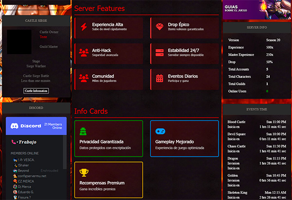 🧩 Template exclusivo 📱 100% responsive 💳 PayPal / MercadoPago 🏆 Rankings avanzados 👤 Profile Control 📚 Guides Module
