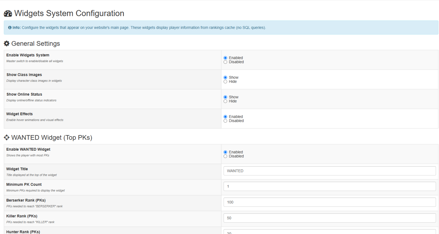 Wanted (Top PK) • Vicio (Top Level) • Usuarios Online — para WebEngine / MMOCMS