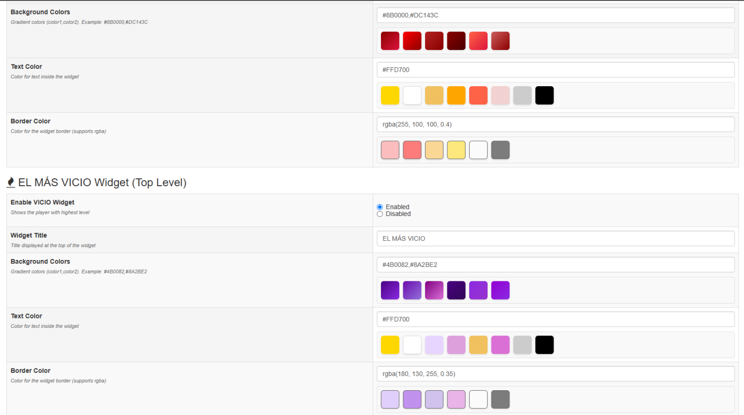 • Colores, títulos y bordes editables vía JSON o AdminCP.